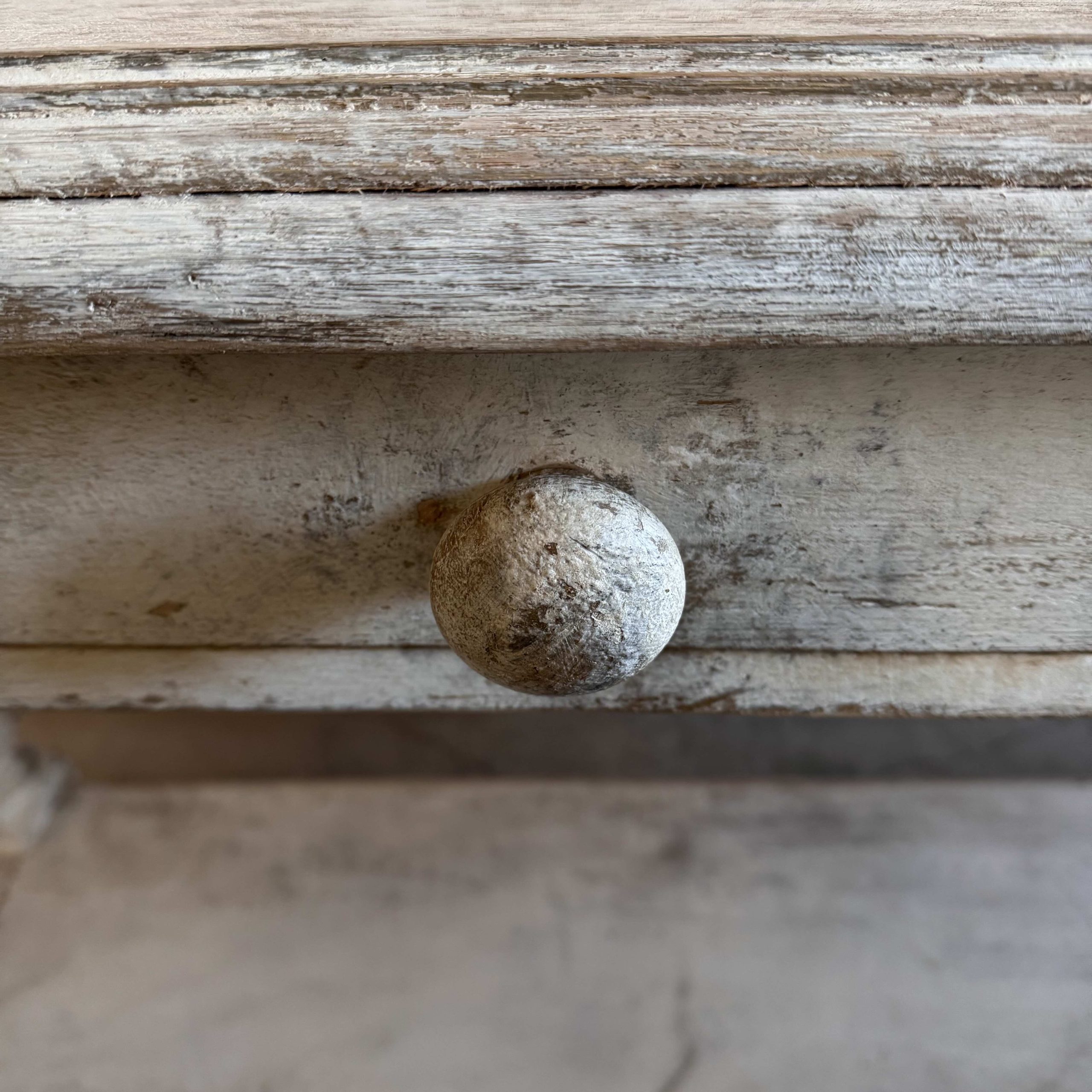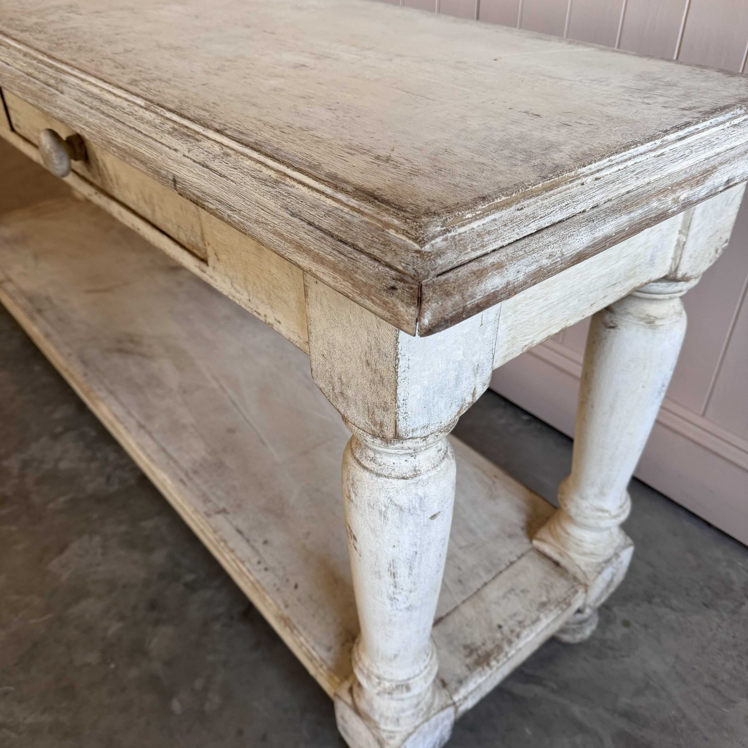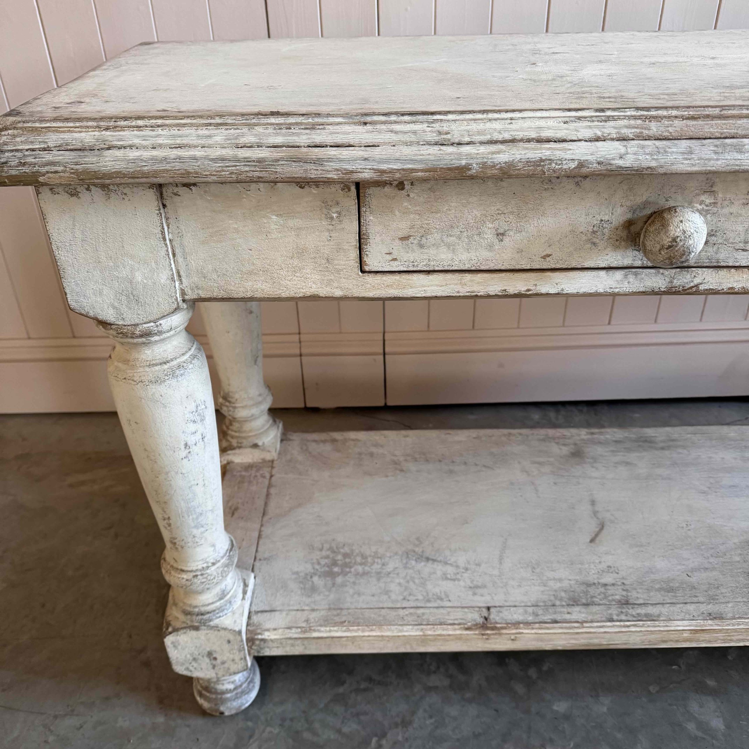 Made from oak with a lovely naturally worn off-white paint.  In very good condition with a fantastic patina.