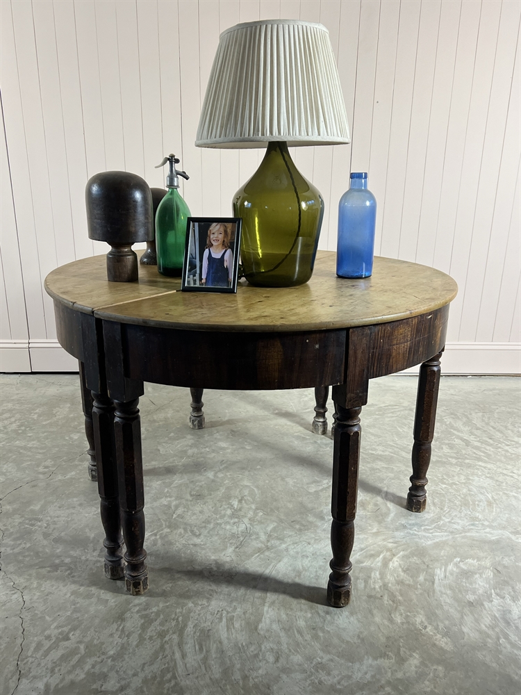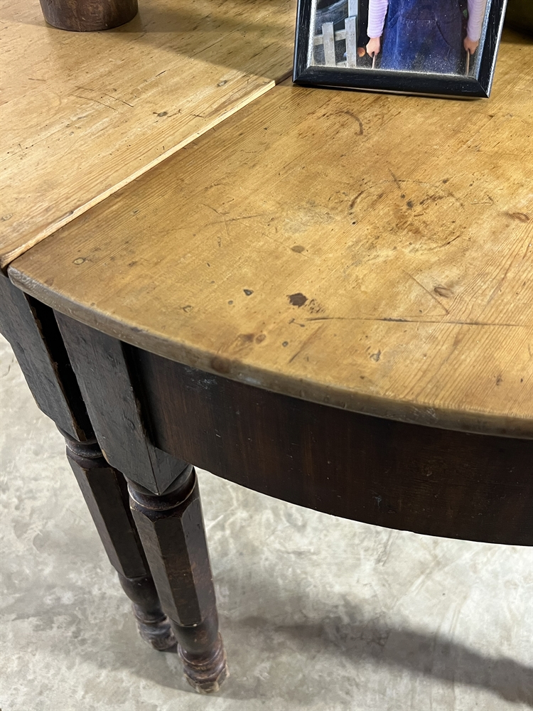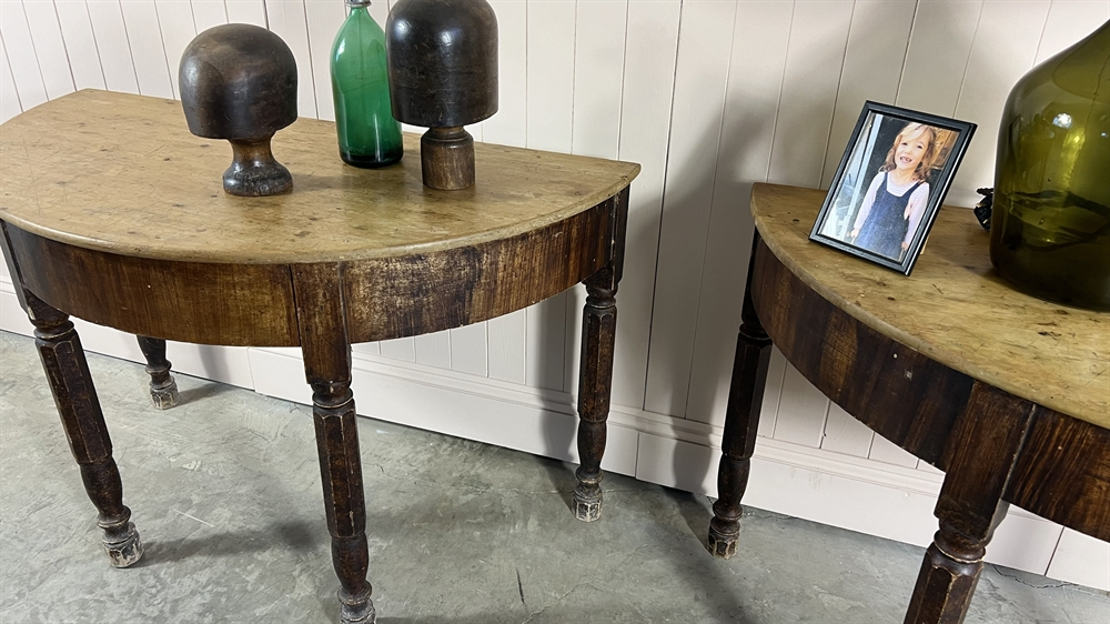 Sourced on the West Coast of France near Bordeaux this pair of antique Demi Lune tables are mid 19th Century.