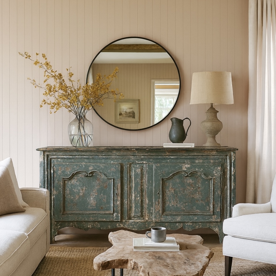 Repurposed and decoratively painted antique blanket box.